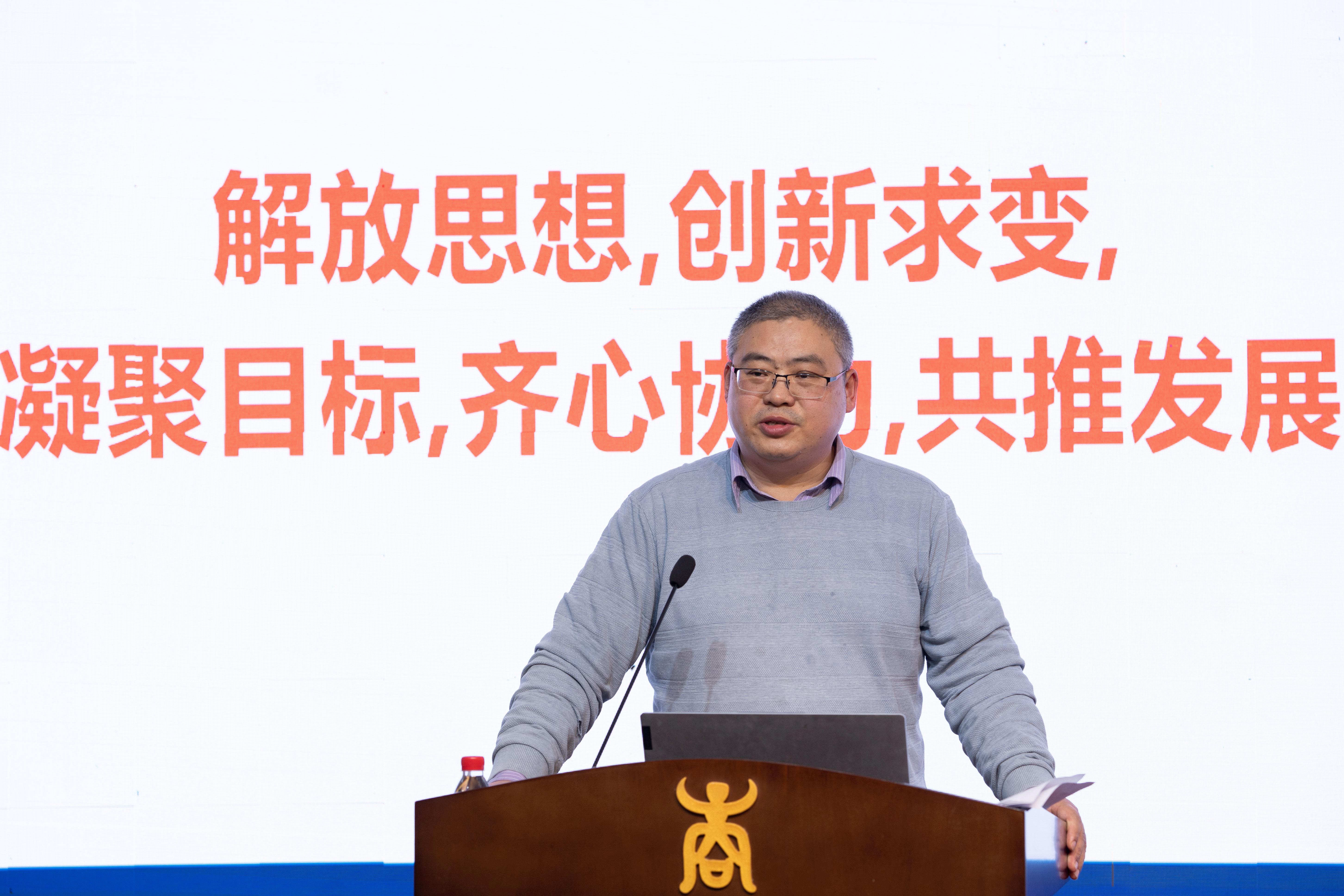 朱帮助院长以《解放思想 创新求变 凝聚目标 齐心协力 共推发展》为题,从目标、差距、措施三个方面对学院各方面工作向全院教职工作了工作通报。他深入剖析了学院专任教师结构、教学成果及教师获奖、学科竞赛获奖、本科生研究生教材、科研项目等方面现状,并进一步就学院出台的相关规定与办法进行了介绍和解读。朱帮助院长表示,学院将不断拓宽人才引进渠道的宽度和深度,聚力引培高层次创新人才,同时继续为老师们搭建良好的教学科研平台,做好各项服务工作,希望全体教职工解放思想、凝聚共识、找准目标、认识差距,积极融入学院发展大局,切实增强教学科研能力与水平,共同推进新一轮学科评估上台阶上水平。