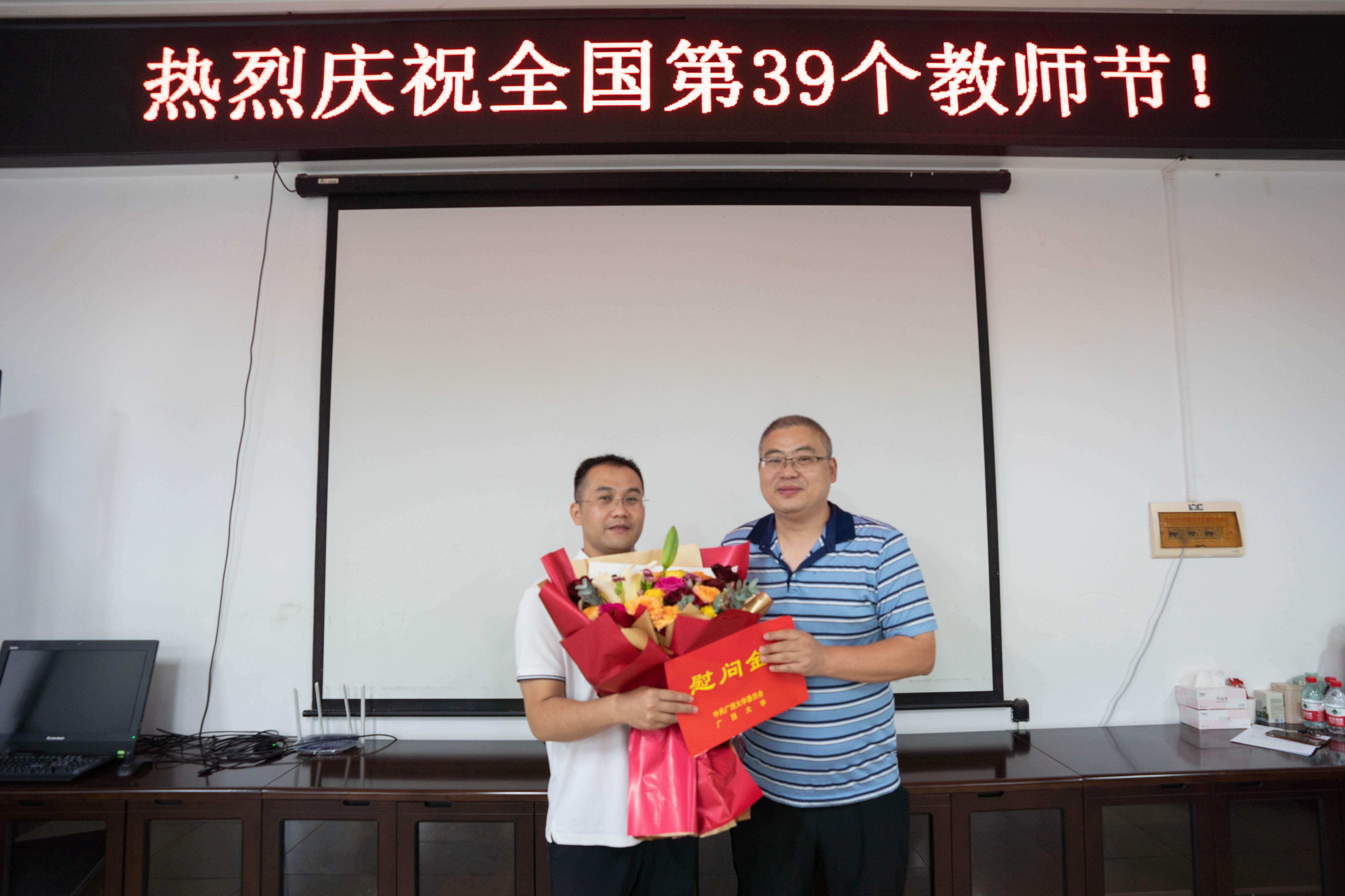 朱帮助院长感谢老师们为学院、学校改革发展做出的不懈努力和重要贡献,希望大家不忘立德树人初心,牢记为党育人、为国育才使命,树牢“躬耕教坛、强国有我”的志向和抱负,以崇高的师德和强烈的育人担当,为学院、学校的建设发展贡献力量,为建设新时代壮美广西和教育强国提供有力支撑。