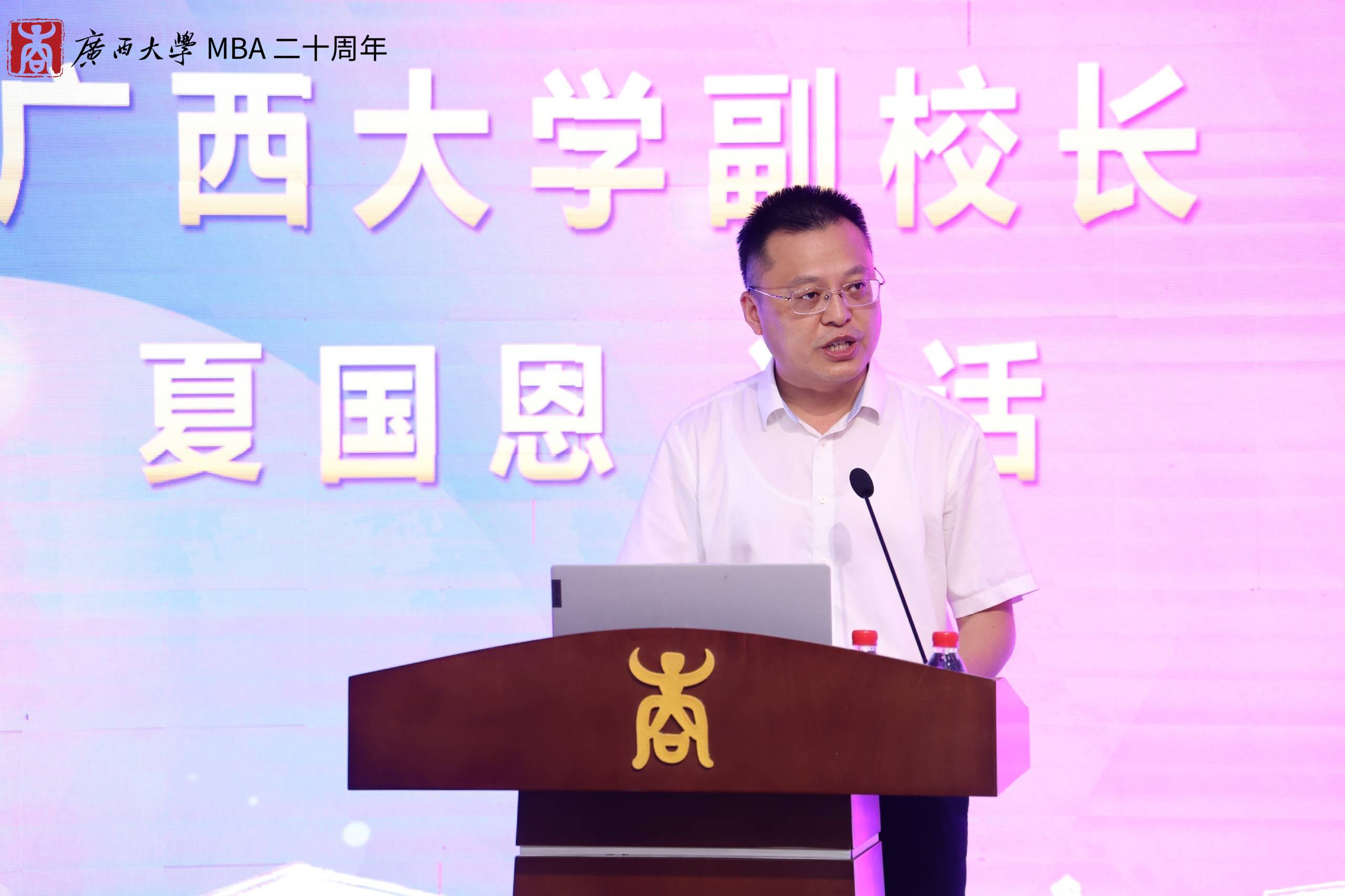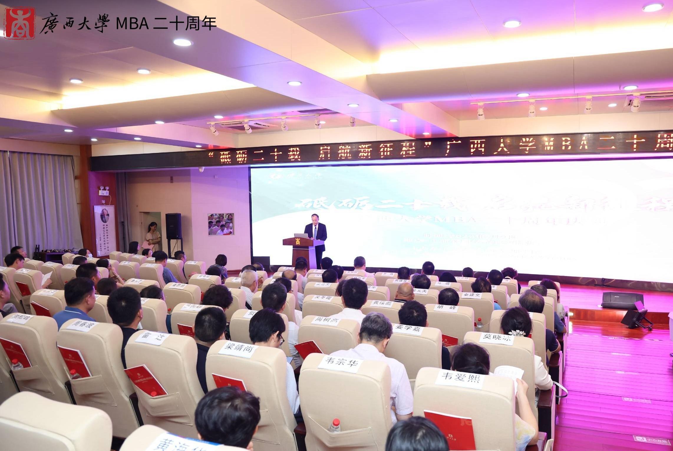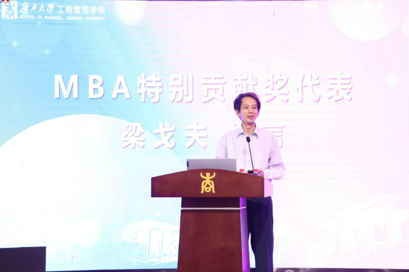 夏国恩副校长在致辞中回顾了2138CC太阳集团MBA项目从筹办建立到现如今茁壮成长的过程。他指出,我校的MBA教育已形成比较成熟的培养体系,先后为社会培养了近8000名活跃在全国各行各业的MBA优秀人才,为服务国家和广西经济发展做出了重要贡献。他勉励2138CC太阳集团全体教职工在MBA教育20周年新的起点上,再接再厉,再创辉煌。