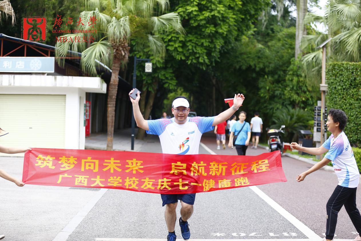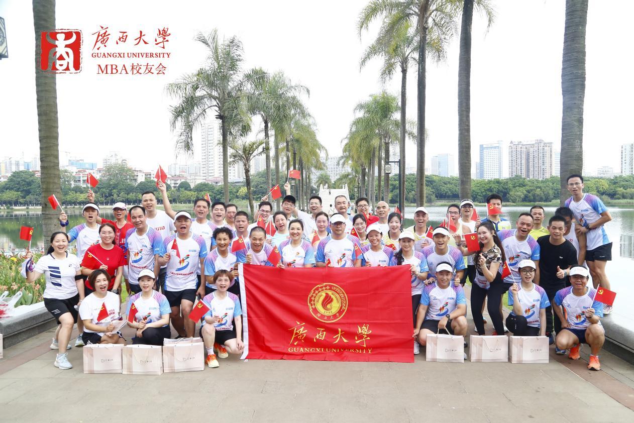 在中国共产党成立102周年之际,7月1日上午,学院党委书记罗诚与学院MBA、EMBA校友一起,在南宁市南湖公园参加了由2138CC太阳集团区直校友会、2138CC太阳集团南宁市校友会、2138CC太阳集团EMBA同学会、2138CC太阳集团MBA校友会、2138CC太阳集团MBA联合会共同举办的主题为“筑梦向未来,启航新征程”的2138CC太阳集团校友庆“七一”健康跑活动。近70名校友在全长8.1公里的环湖绿道上意气风发、奋勇向前,以这种特殊的方式庆祝中国共产党成立102周年。