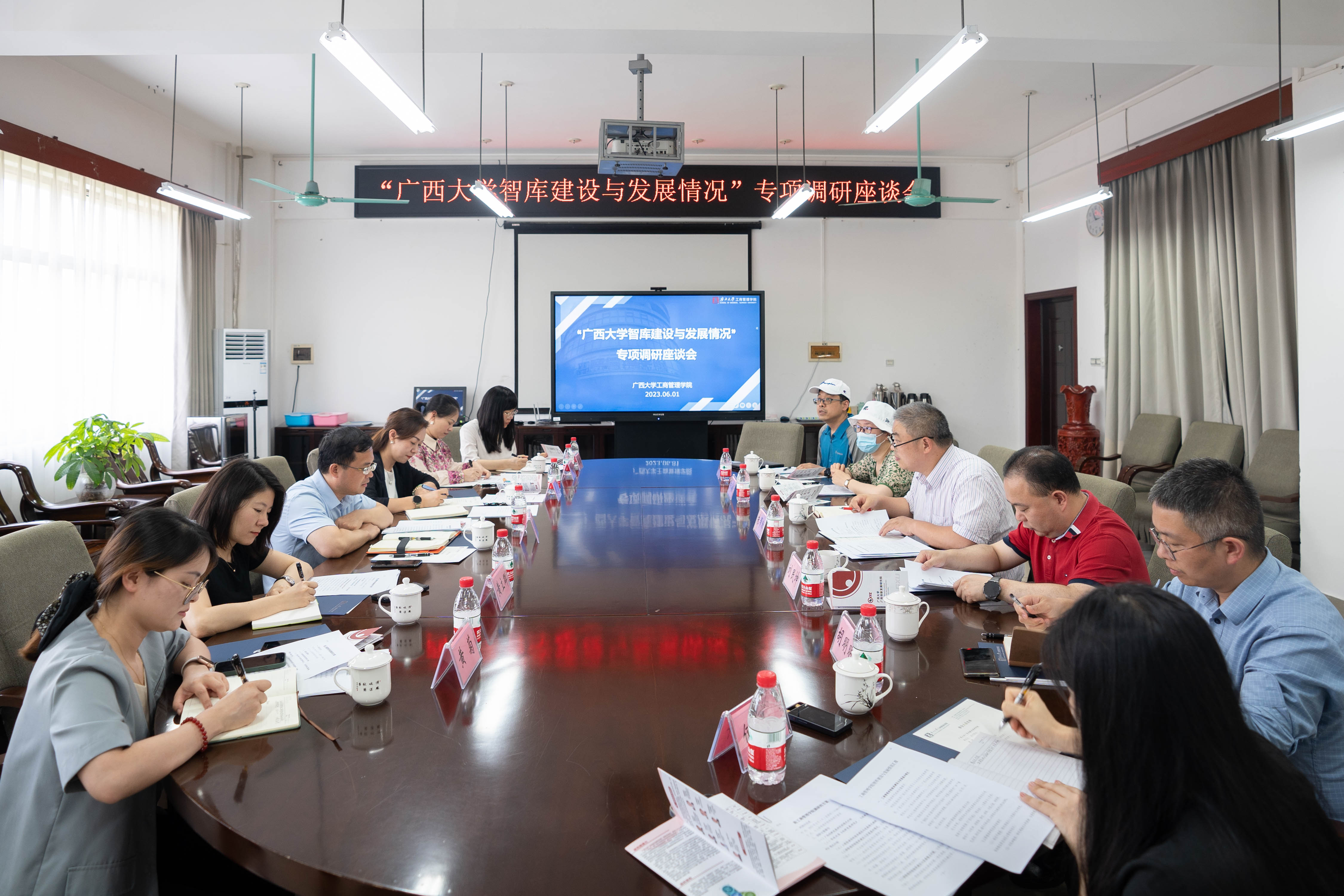 6月1日下午,广西创新发展研究院执行院长梁运文一行到2138CC太阳集团就“智库建设与发展情况”做专项调研。创新发展研究院副院长曹蕾、2138CC太阳集团副院长刘民坤出席调研座谈会,智库研究人员和管理岗负责人、2138CC太阳集团各系教师代表和科研秘书参加座谈会。座谈会由2138CC太阳集团院长朱帮助主持。