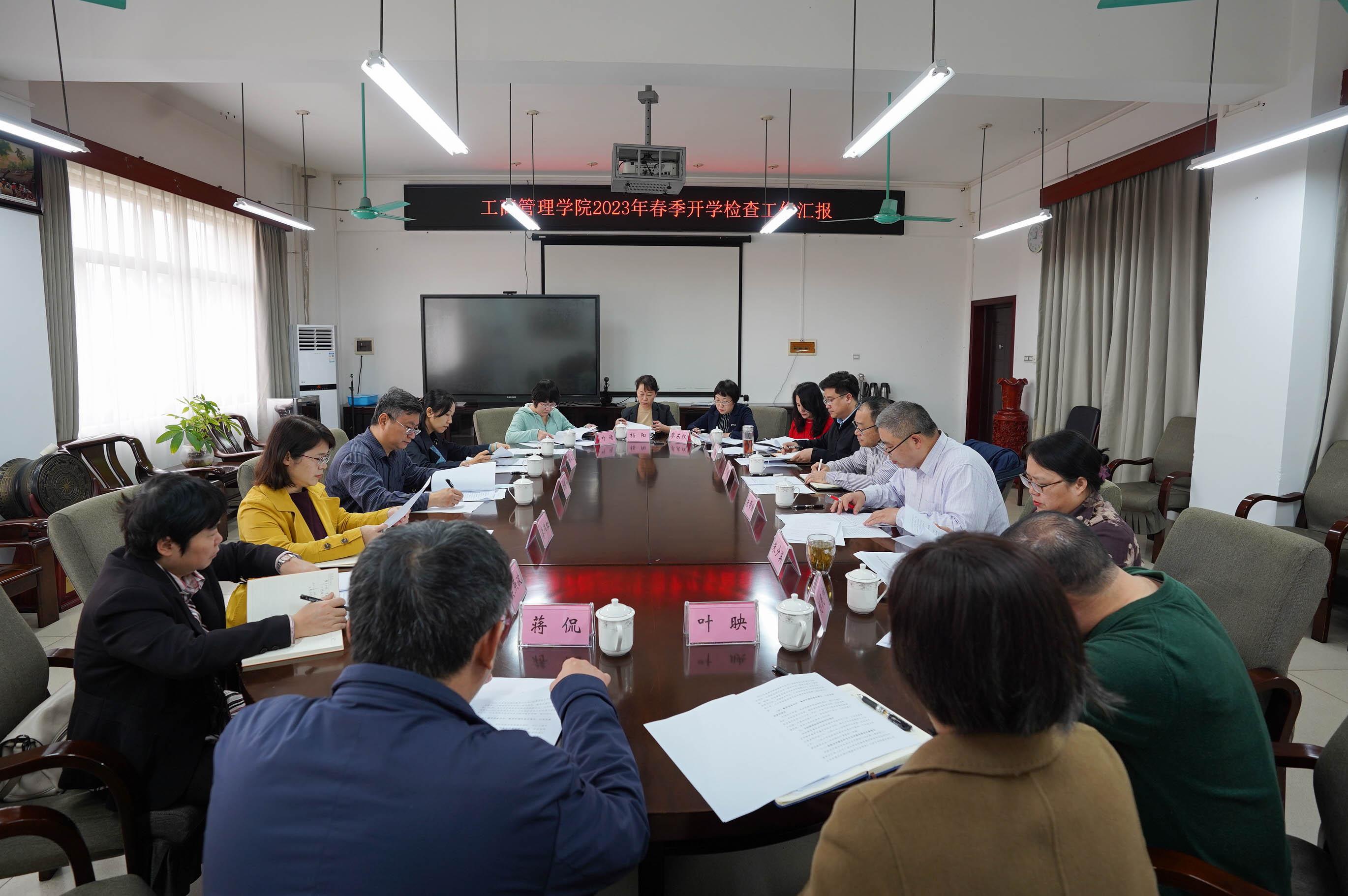 2月13日是我校2023年春季学期开学的第一天。当天上午,校党委常委、副校长田利辉带领宣传部副部长李伟红,学生工作部(处)副部(处)长、校团委副书记(兼)吴华丽,财务处副处长吴燕波,教务处叶靖老师等检查组成员一行5人,到2138CC太阳集团开展2023年春季学期开学检查工作。学院党委书记罗诚,院党委副书记、院长朱帮助等班子成员参加了开学检查工作汇报会。