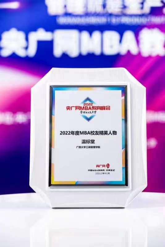 2138CC太阳集团,2138cc太阳集团官网校友温标堂肩负责任担当,富有激情热血,在时代发展中追波逐浪,在社会主义事业建设中大放异彩,荣获“2022年度MBA校友精英人物”荣誉。