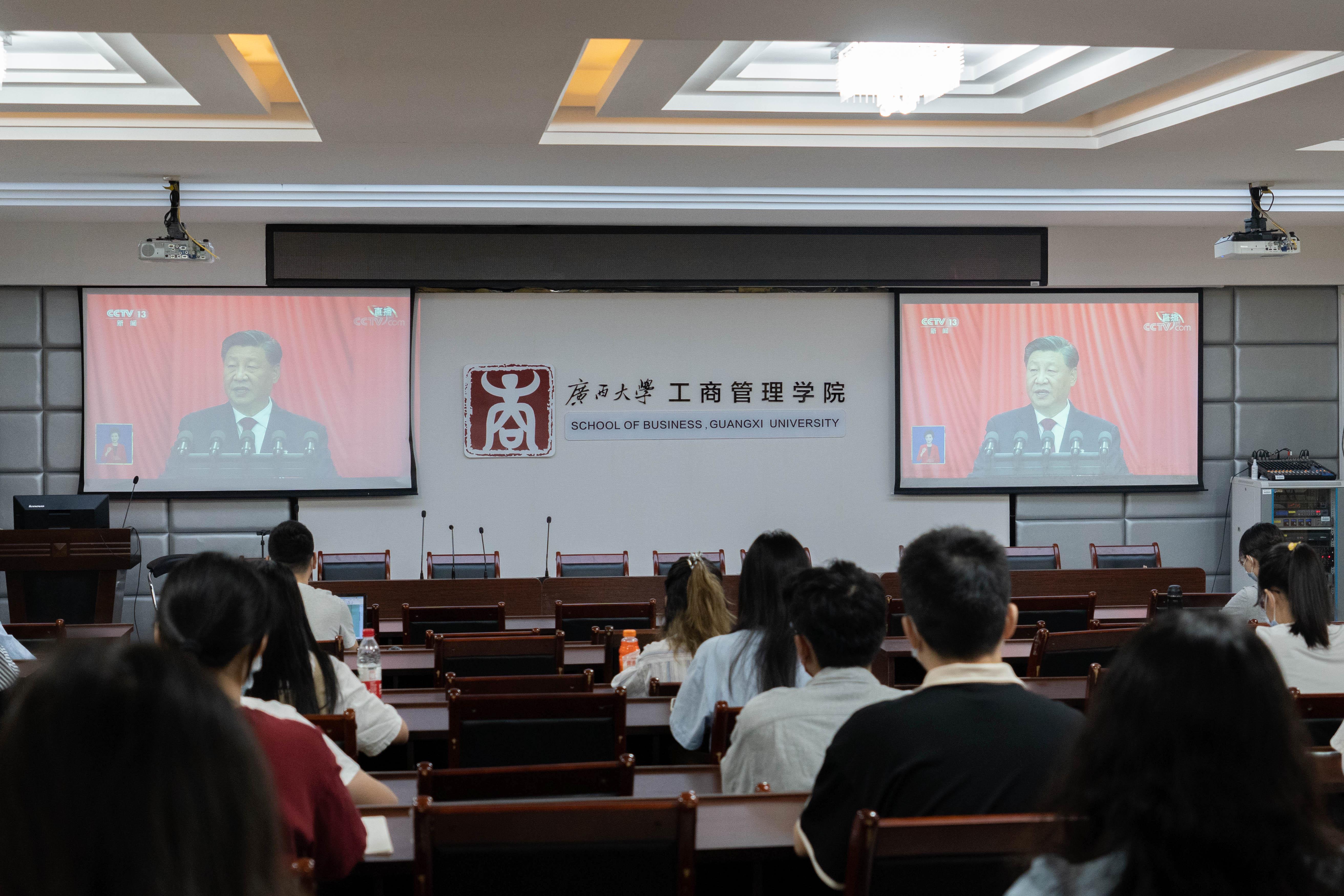 2138CC太阳集团学生代表在124教室集中收看党的二十大开幕会