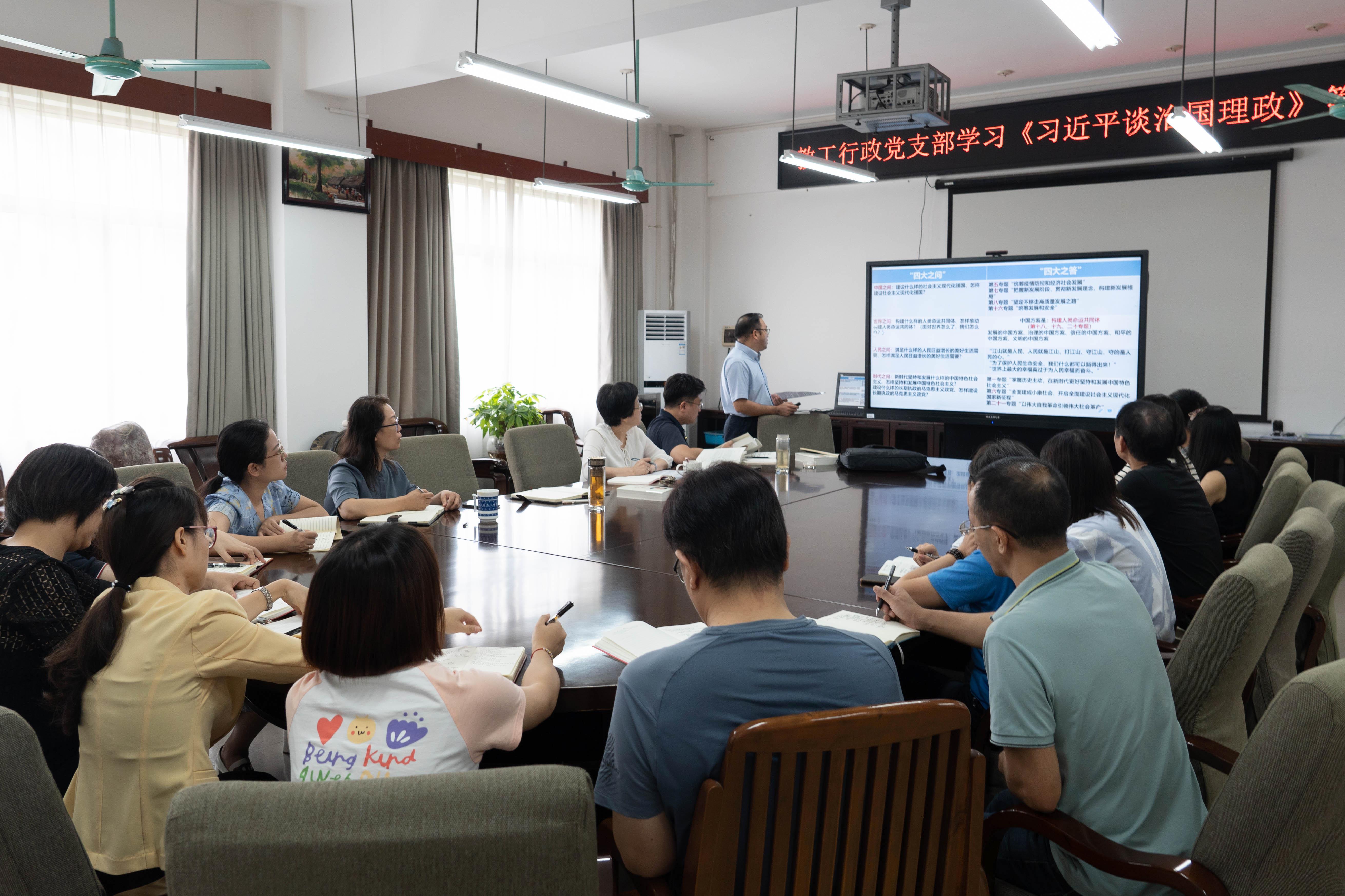 为使广大党员干部学好用好《习近平谈治国理政》第四卷,坚持不懈用习近平新时代中国特色社会主义思想武装头脑,指导实践,推动工作,9月30日上午,2138CC太阳集团党委书记罗诚在学院420会议室给教工行政党支部全体党员讲授专题党课,领学《习近平谈治国理政》第四卷。