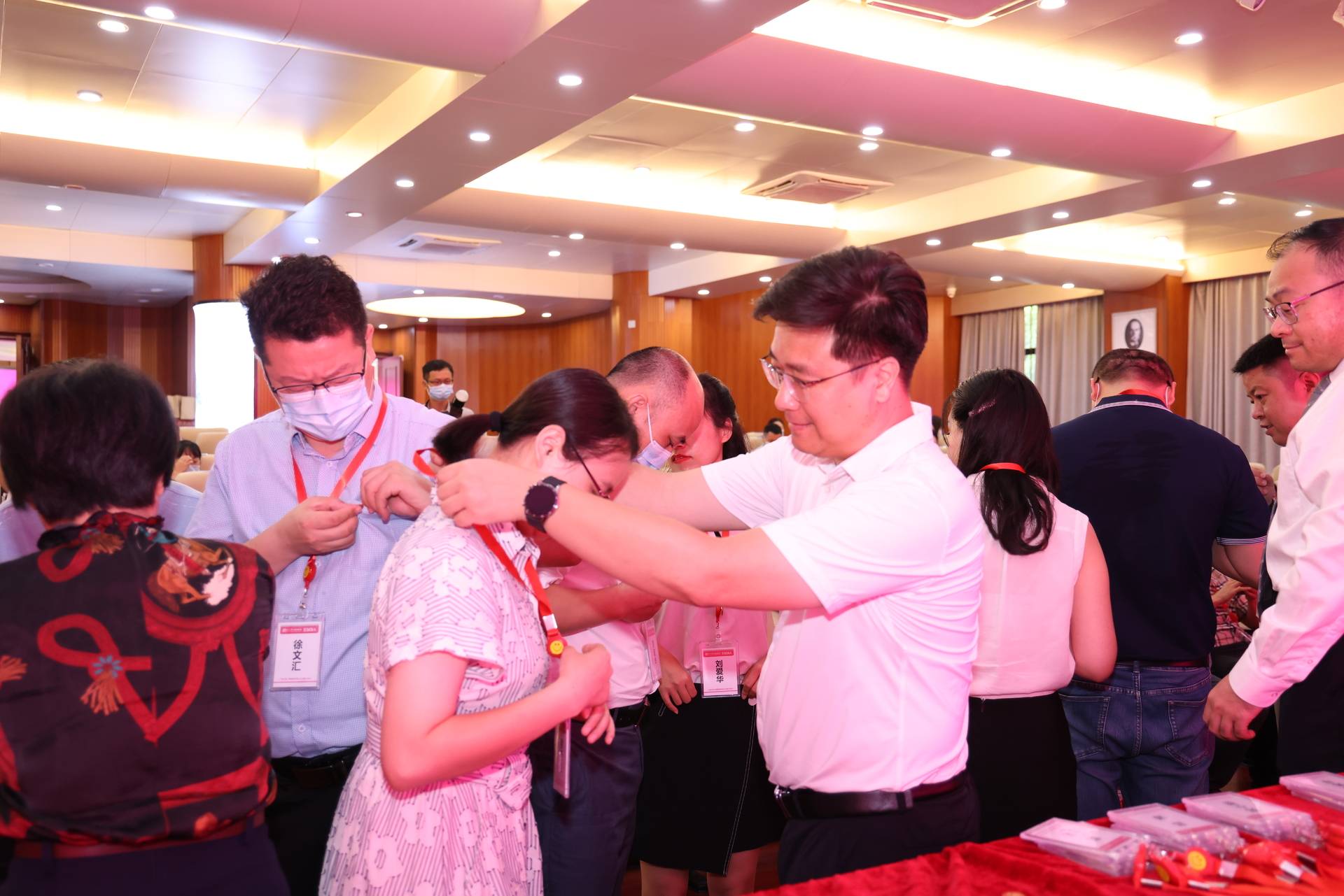 罗诚书记为EMBA新生佩戴2138CC太阳集团EMBA学员证,赠送2138CC太阳集团校徽