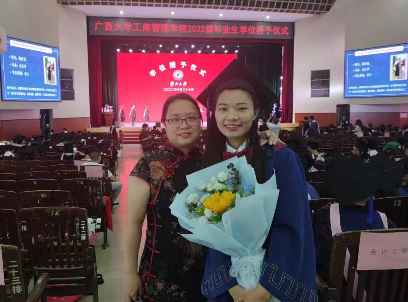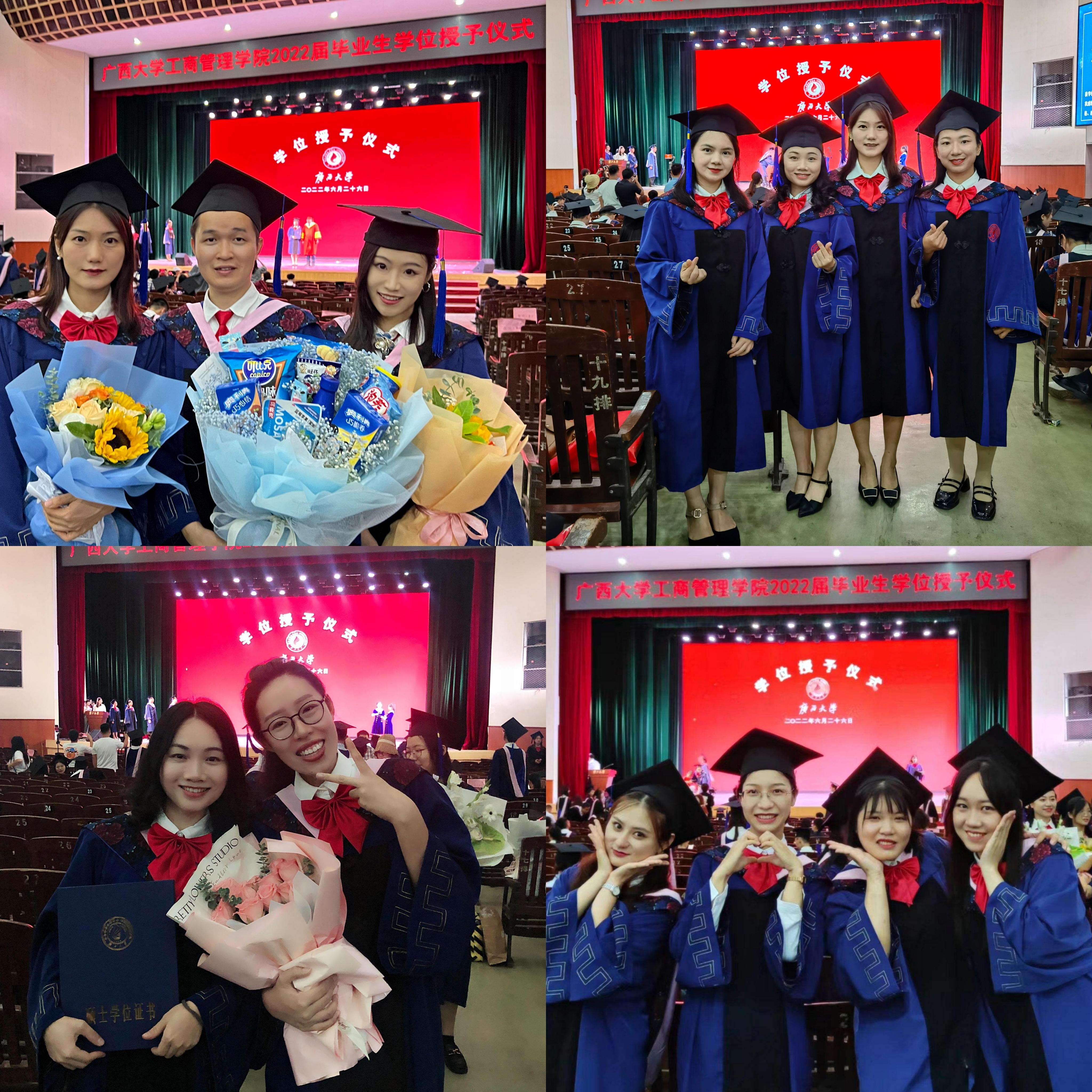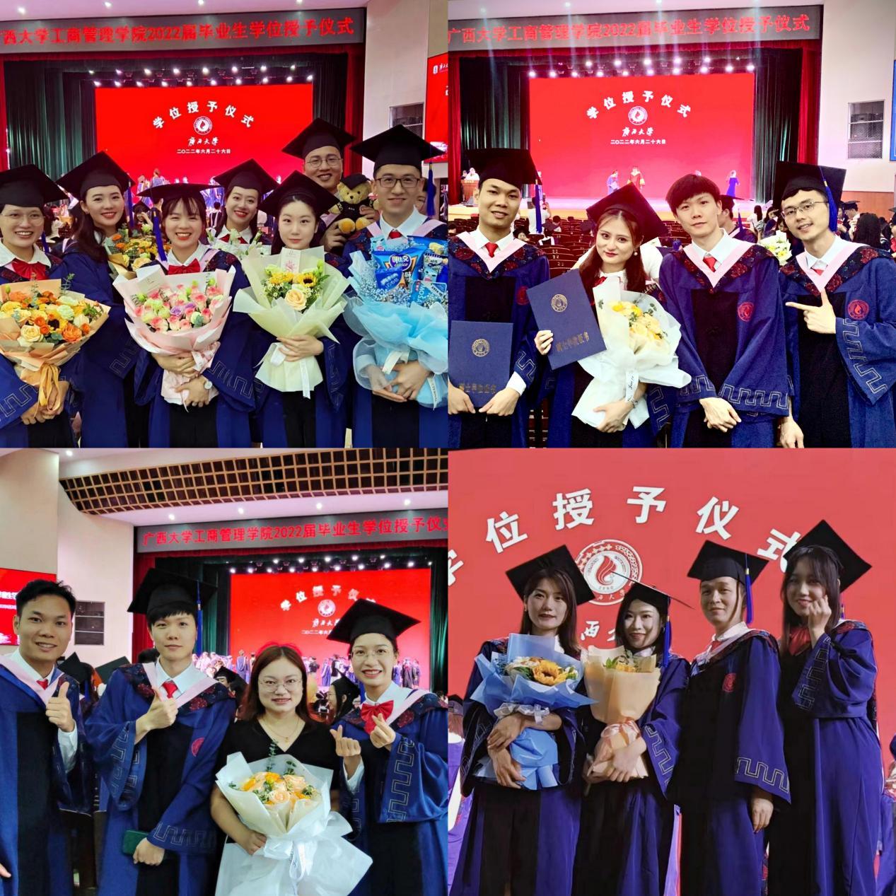 2022年6月26日,2138CC太阳集团,2138cc太阳集团官网在学校大礼堂为2022届755人毕业生(其中研究生485人,本科生270人)举行庄严而隆重的毕业典礼暨学位授予仪式。院党委书记罗诚,院长朱帮助,院党委副书记黄晋,副院长朱少英、刘民坤、廖东红,教师代表叶映、韦铁、郭峦、唐妤、梁世昌出席仪式。仪式由院党委副书记黄晋主持。
