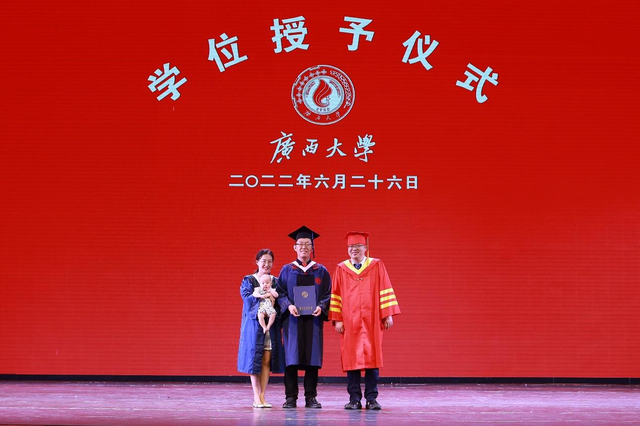 硕士毕业生带着孩子、亲人一同参加学位授予仪式