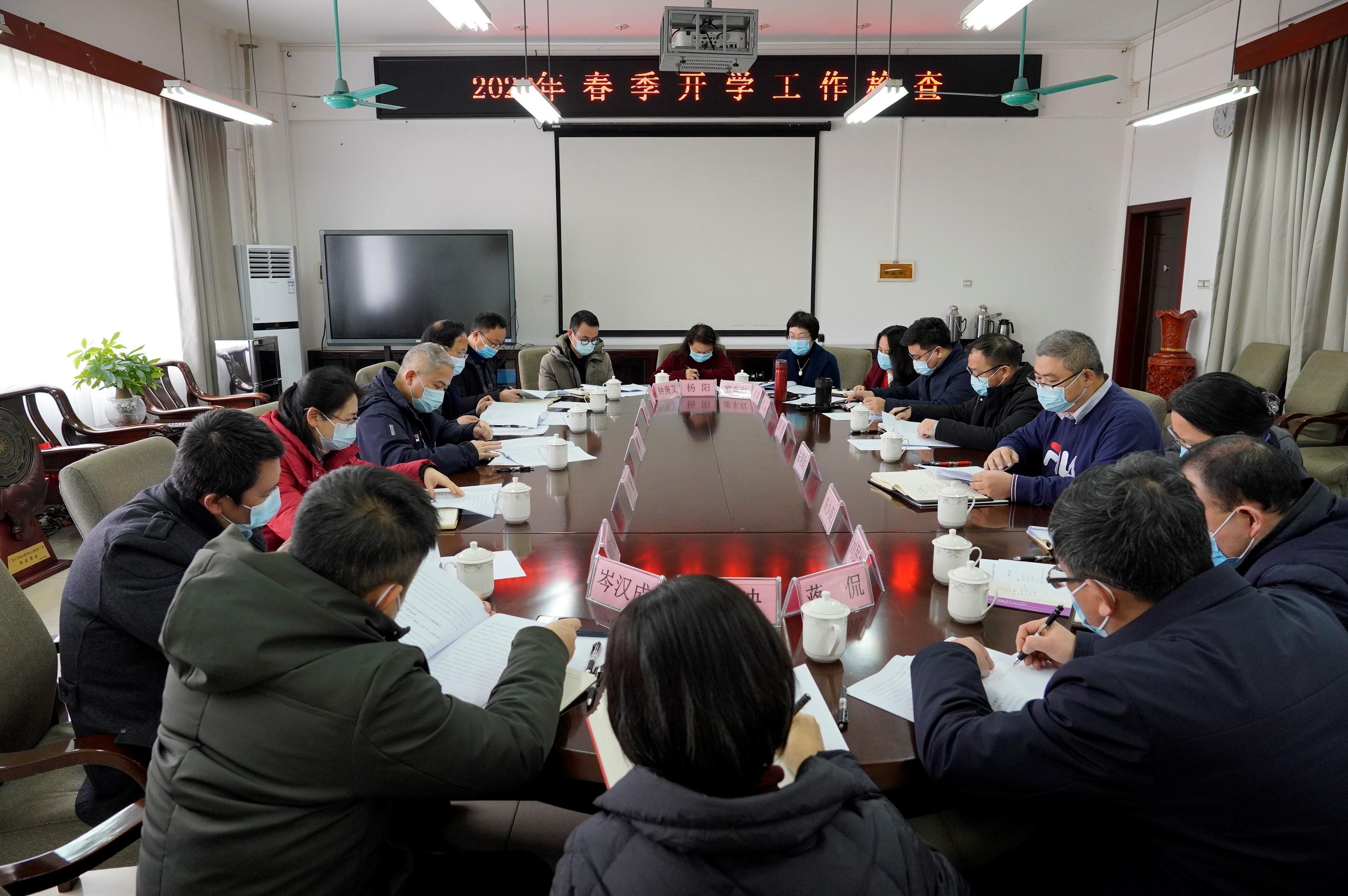 2月14日是我校2022年春季学期开学的第一天。当天上午,校党委常委、副校长刘向带领校纪委副书记罗国斌、人力资源处副处长周誉、科技处副处长余波、国有资产与实验室管理处副处长周海斌等检查成员一行6人,到2138CC太阳集团开展2022年春季学期开学检查工作。学院党委书记罗诚,学院党委副书记、院长朱帮助等班子成员参加了开学检查工作汇报会。