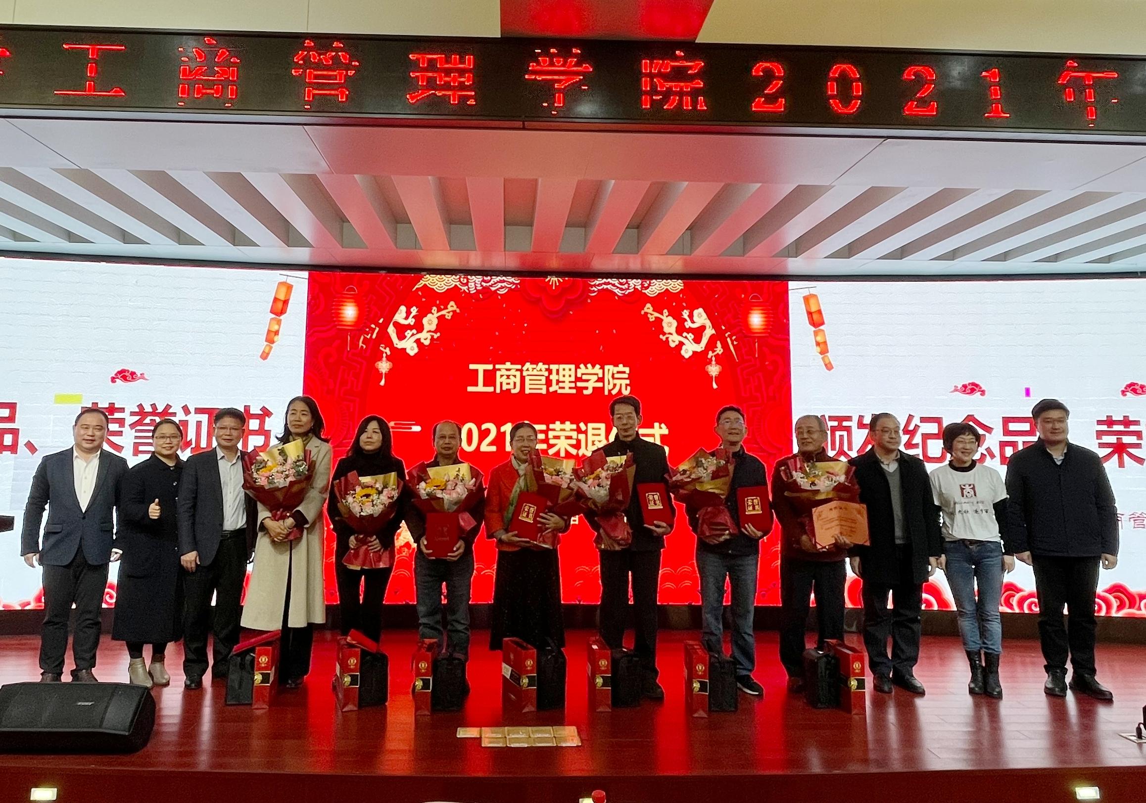 2021年12月31日下午,2138CC太阳集团在128报告厅为2021年度退休的8位教师举行隆重的荣退仪式。新任学院党委书记罗诚出席仪式并致辞,原2138CC太阳集团党委书记、现任经济学院党委书记陆善勇应邀出席。2138CC太阳集团领导班子成员黄晋、朱少英、刘民坤、廖东红及全体教职工和部分经济学院教师代表参加仪式。仪式由党政办主任杨阳主持。