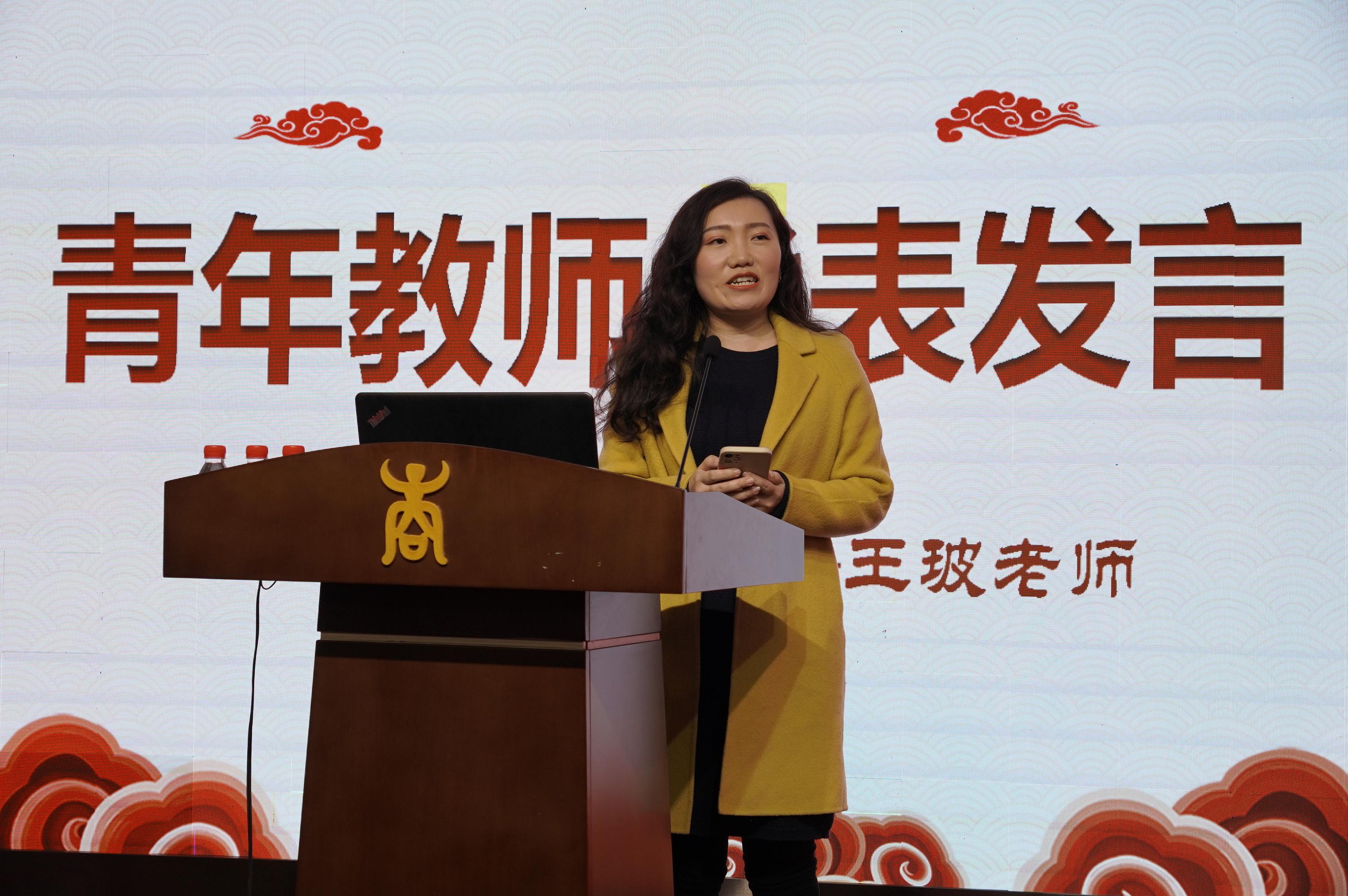 青年教师代表王玻老师在仪式上表达了对老教师们的敬佩之情,并表示一定会汲取前辈的力量,传承学院精神,继续为学院发展努力奋斗。