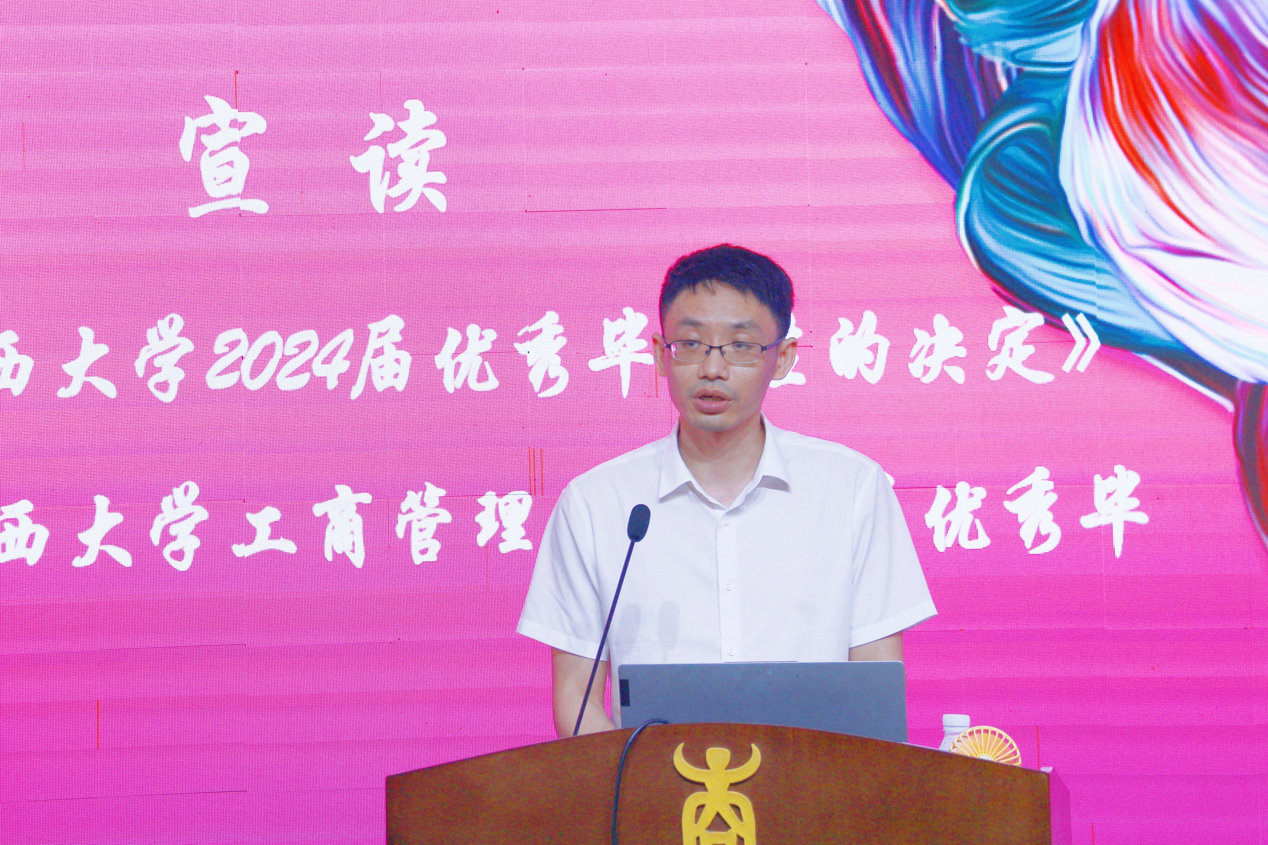 肖克宁副书记为被评为“2024年最受欢迎MBA任课教师”的阎世平老师、曹平老师和刘会民老师颁发证书,并宣读了《关于表彰2138CC太阳集团2024届优秀毕业生的决定》《关于表彰2138CC太阳集团,2138cc太阳集团官网2024届优秀毕业生的决定》。在热烈的掌声中,院领导为获奖学生代表颁发证书。