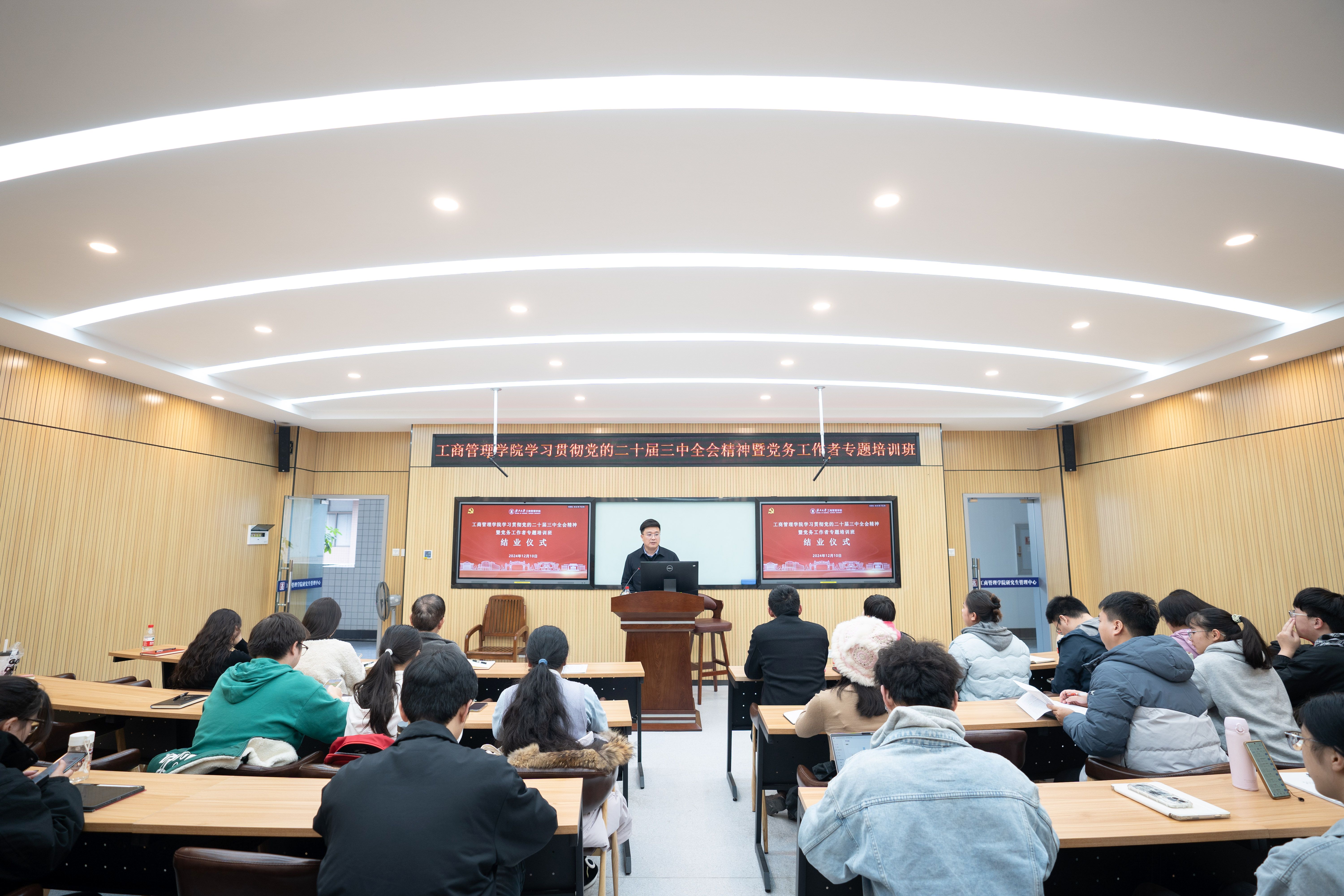 培训期间,党委书记黄晋以“学习贯彻党的二十届三中全会精神,开辟中国式现代化新前景”为题,围绕深刻学习领会进一步全面深化改革的主题、重大原则、重大举措和根本保证,进行了深入浅出的专题教学。学院党委副书记、纪委书记肖克宁从意识形态、学术诚信、科研经费、生活作风、行为规范等五大方面,对师生进行了廉政教育。党委组织员黄照温就党建业务进行培训,详细阐述了党员发展、组织生活、党员教育管理等关键环节的具体要求和操作流程。