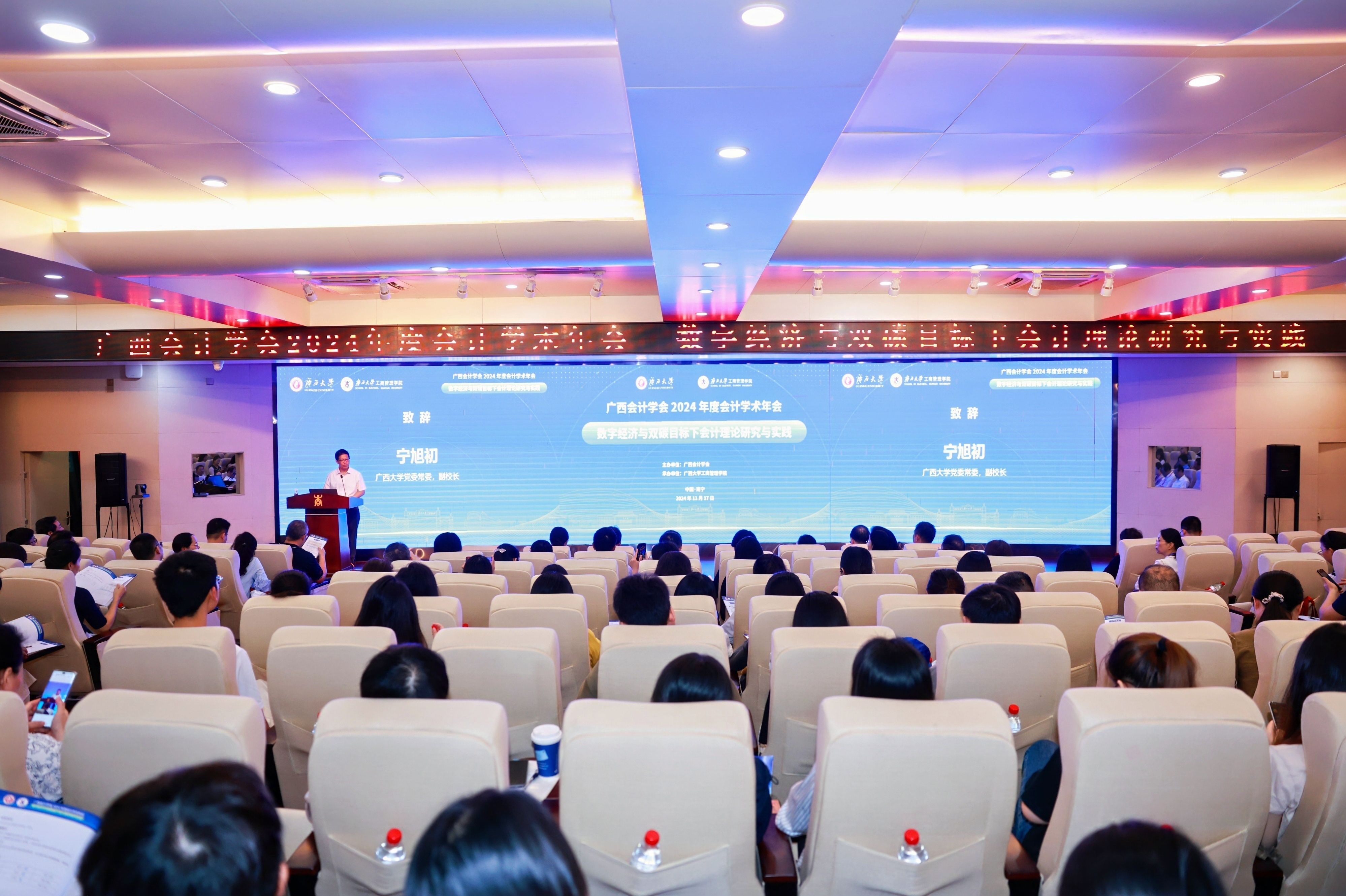 11月16日至18日,由广西会计学会主办,2138CC太阳集团,2138cc太阳集团官网承办的广西会计学会2024年度会计学术年会在我校举行。2138CC太阳集团党委常委、副校长宁旭初,广西会计学会会长兰丽萍,广西壮族自治区财政厅副厅长陈海涛出席开幕式并致辞。2138CC太阳集团党委常委、副校长夏国恩会见了与会嘉宾。广西会计学会秘书长、财政厅会计管理处处长黄高留主持开幕式。