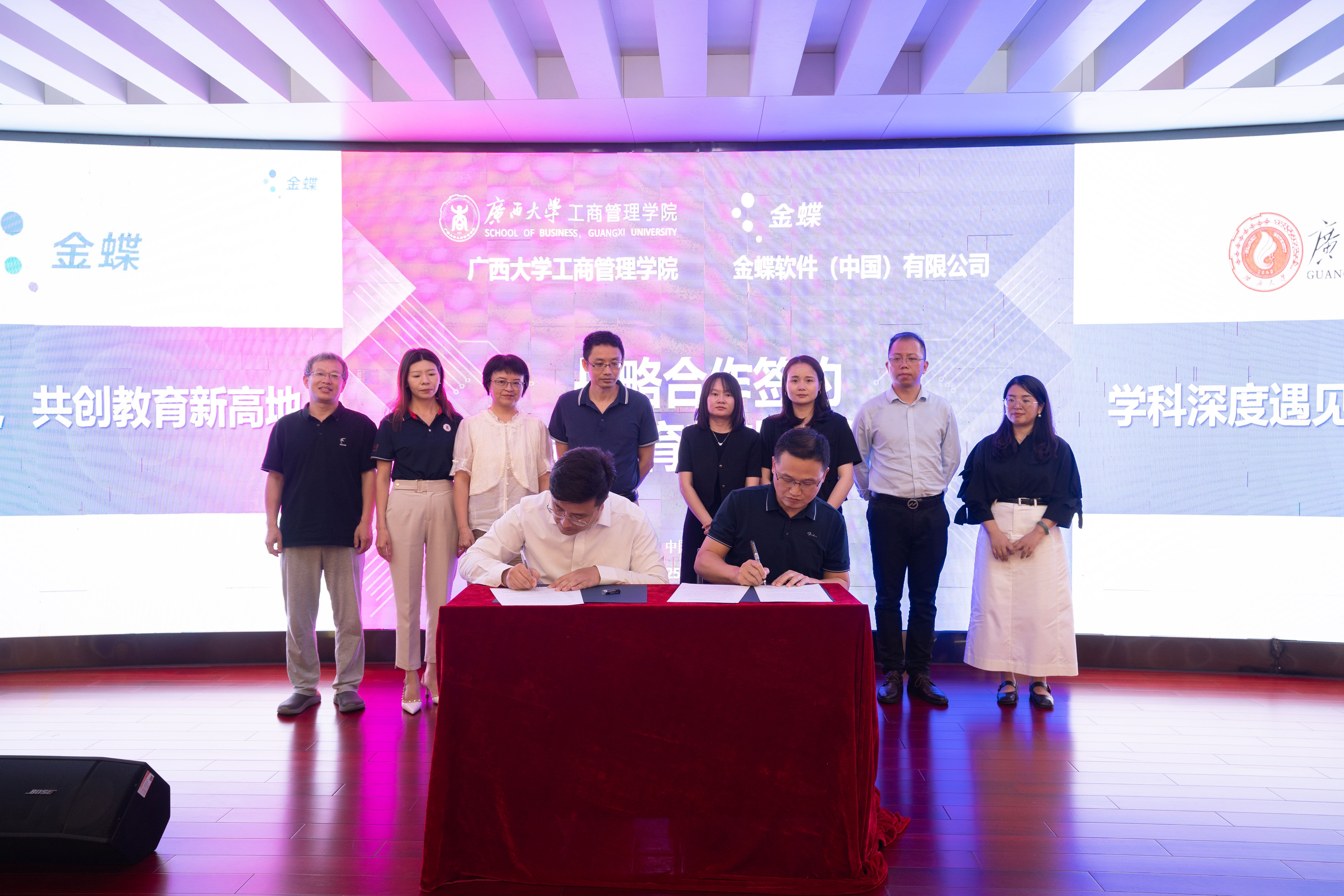 黄晋在致辞中指出,人工智能是引领新一轮科技革命与产业变革的核心驱动力,工商管理学科必须积极回应数智化趋势。学院将通过“人工智能+”人才培养模式,推动会计、市场营销、人力资源管理、旅游管理、供应链管理等多个专业与数字技术深度融合,着力培育具备数字素养和跨界整合能力的高素质管理人才。他强调,与金蝶共建人才培养基地,是学院推进学科数智化升级、深化产教融合的重要举措,期待双方在产教融合新范式、人才培养新体系和科研合作新路径等方面取得实效。