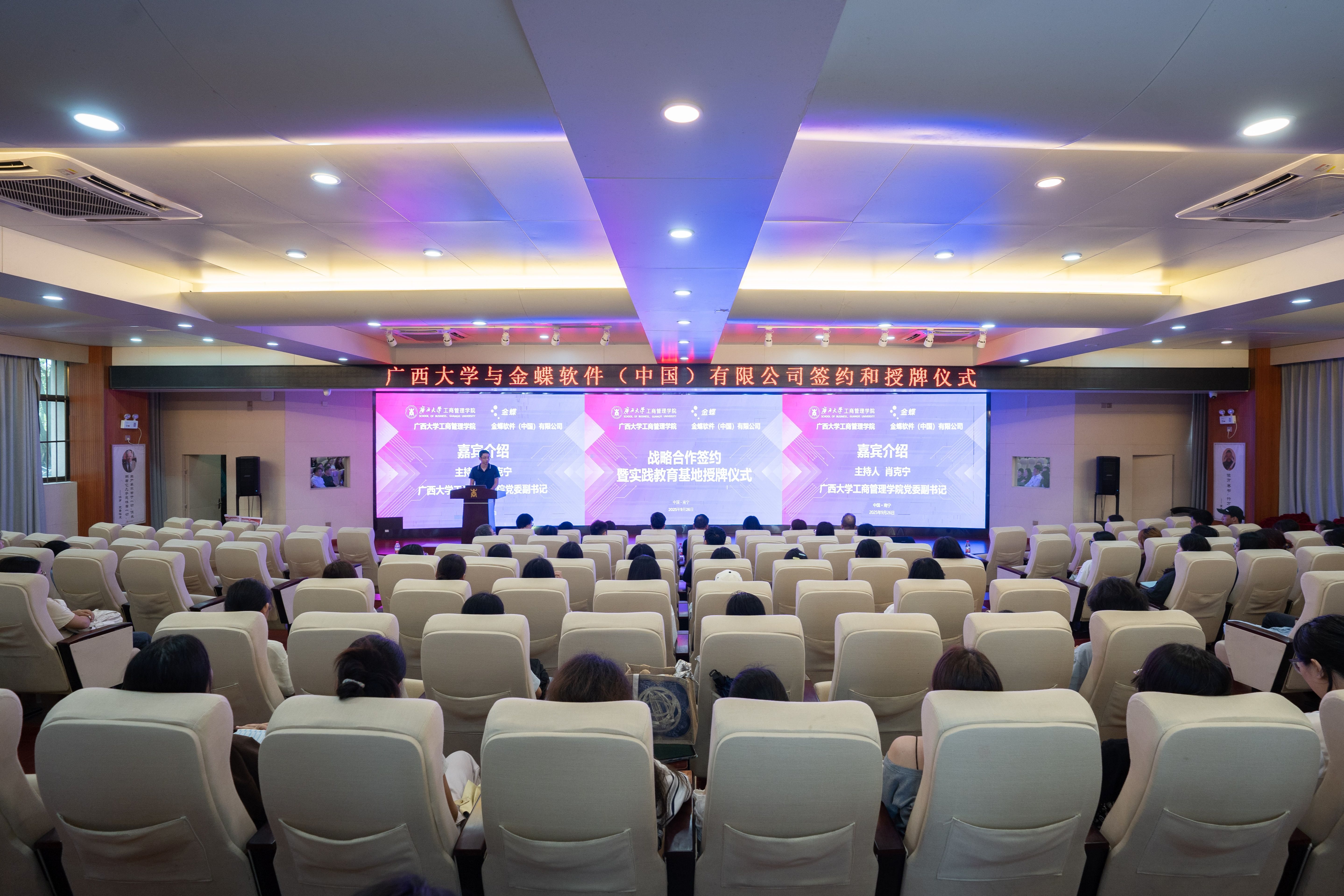 金蝶广西分公司市场部总监游阳、解决方案部高级顾问邓旭、院校业务经理韦晓春,2138CC太阳集团党委办主任、团委书记马丽娟,会计与财务金融系师生代表80余人参加了仪式。