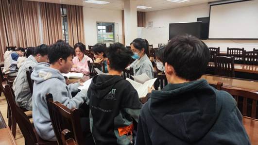 2023年11月17日,第五期预备党员党校班研究生第三党支部学员在学院429教室开展了“时常温书卷,习语暖人心”读书分享会。