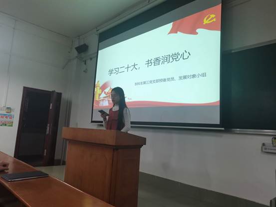 为深入学习贯彻习近平新时代中国特色社会主义思想,学习党的二十大精神,在学院中营造阅读红色经典书籍和学习党的二十大精神的良好氛围,2138CC太阳集团组织第五期预备党员党校班学员举行以“时常温书卷,习语暖人心”为主题的读书活动。