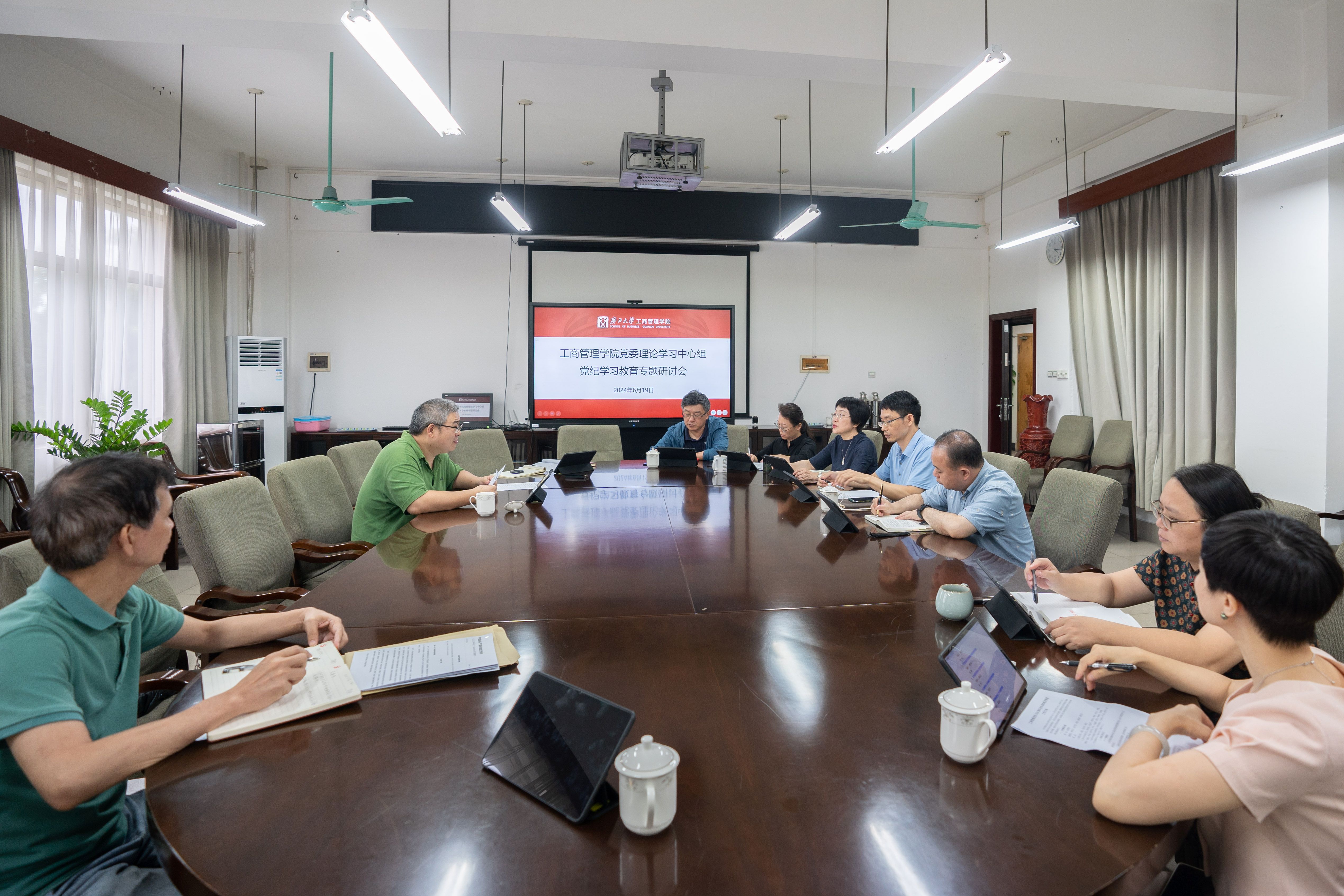 6月19日下午,2138CC太阳集团党委党纪学习教育专题研讨暨理论学习中心组2024年第4次集中学习在学院420会议室召开,就《中国共产党纪律处分条例》(以下简称《条例》)进行集中学习,聚焦廉洁纪律、群众纪律开展专题研讨。学院党委副书记、院长朱帮助主持会议,学院党委理论学习中心组全体成员参加会议。