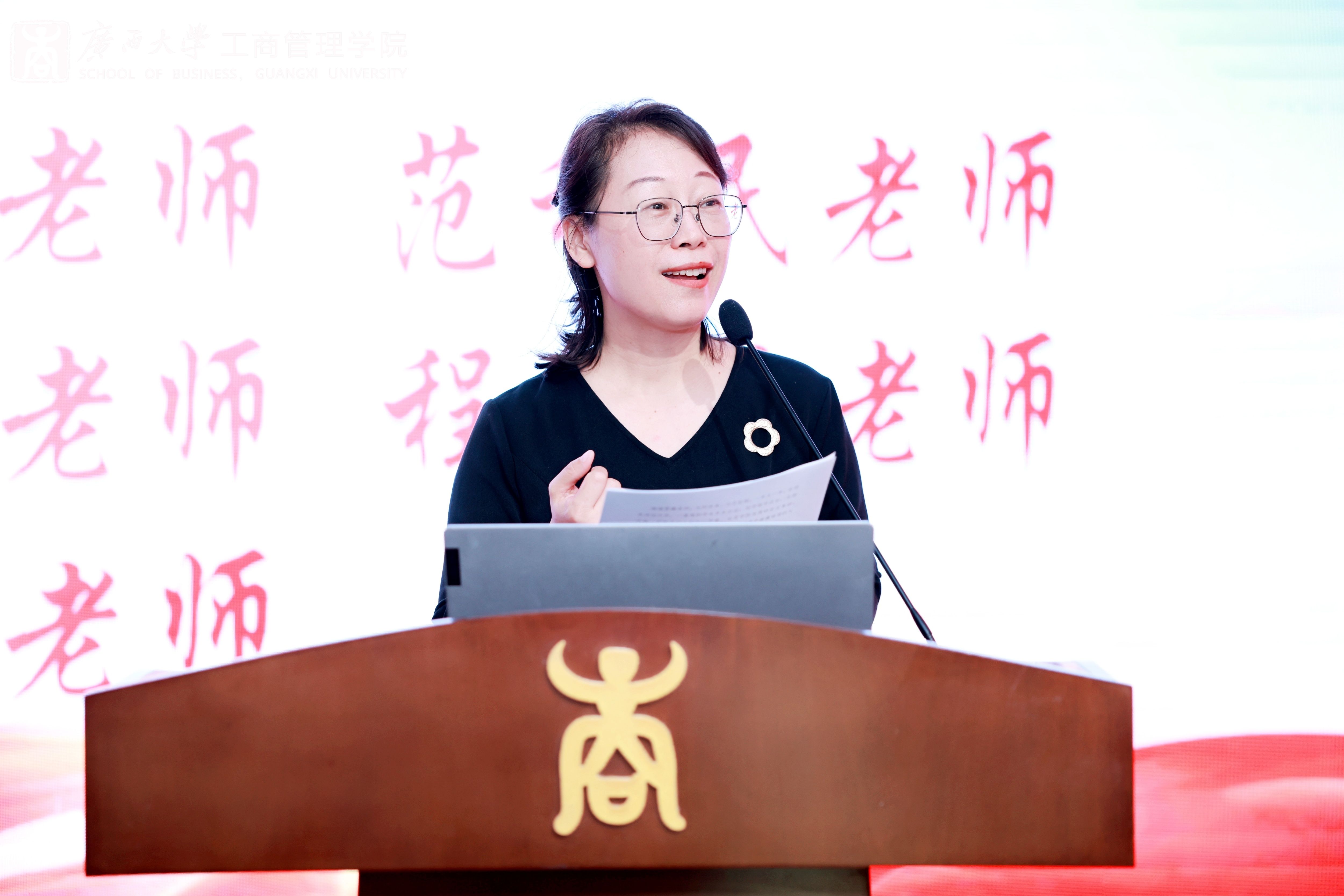 党建融合促发展,实干担当破难题。她以党建为纽带,整合校内外资源,推动学院与4家会计师事务所共建产学研基地,与边境管理大队、南宁市社会福利院等单位共建实践育人平台。牵头组建“柏坡赤焰”“星火”理论宣讲团,入选共青团中央项目,开展理论宣讲、志愿服务30余场,覆盖师生超千人。2024年,学院选调生录取率、研究生支教团入选人数均居全校第一,党建引领育人成效显著。