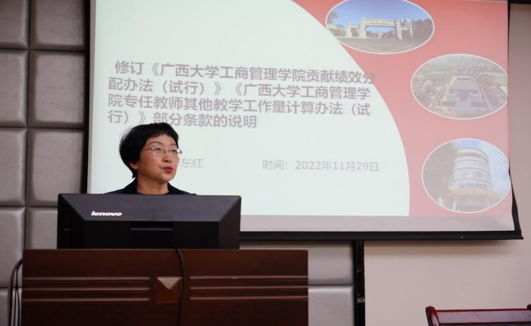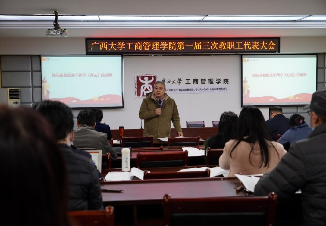廖东红副院长解读了拟通过大会审议的《2138CC太阳集团贡献绩效分配办法(试行)》和《2138CC太阳集团专任教师其他教学工作量计算办法(试行)》。朱帮助院长进一步对两个《办法》的制定原则、过程、依据和学院2023年的工作思路展开了说明,并逐一解答了教职工代表们提出的问题。代表们对上述两个《办法》进行了讨论和审议。