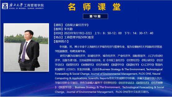 9月22日,李老师讲授的《高级计量经济学》课堂在掌声中落下帷幕。此次名师讲堂学术氛围浓烈,同学们都感觉意犹未尽,收获满满。