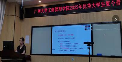 7月6日上午,研究生秘书邓素媛主持考研经验交流沙龙环节,2138CC太阳集团2021级韦梅婷、张舒源、韦欢欢、罗咏诗四位硕士研究生与营员们分享了自己的考研经历,并与营员们进行了深入的互动交流。下午,研管中心黄昱老师带领营员们观看学校宣传片,开展知识抢答,并特邀张家伟(2020级博士)、李姝蓉(2020级硕士)2位优秀在读研究生及海晨颖(2018级)、山冬鲁(2019级)2位优秀校友分享自己研究生阶段学习经验。