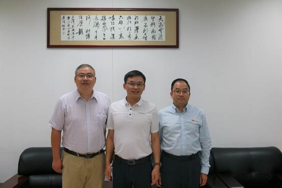 学院院长朱帮助(左一)、温标堂先生(中)、学院党委书记罗诚(右一)