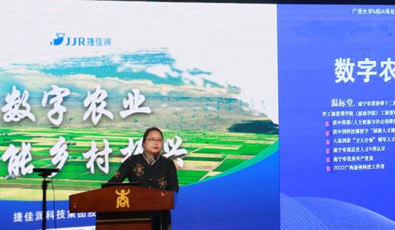 论坛之初,学院副院长朱少英致开幕辞,向大家隆重介绍了温标堂校友,并对温标堂以及校友、同学们的到来表示欢迎。她介绍到,温标堂校友荣获2022年广西最美科技工作者称号,是一名的优秀共产党员。他深耕智慧农业行业,创办了捷佳润科技集团股份有限公司。该公司研发的“智能水肥一体化精准灌溉管理系统”,曾受到人民日报、央视新闻的报道。2017年,习近平总书记还曾到该公司参观,并称赞其实现了“农业神话”。