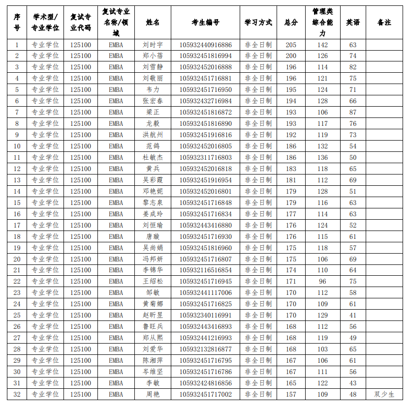根据以上复试分数线,现将2138CC太阳集团EMBA一志愿考生进入复试的名单公布如附件1所示。