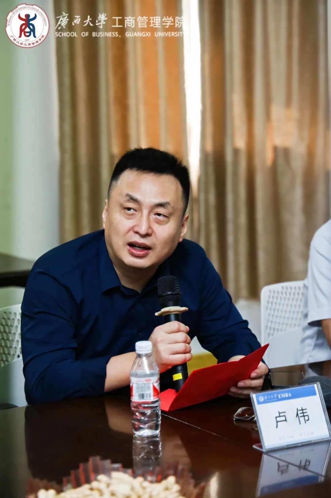 EMBA十三班班长卢伟代表班级向辛勤付出的老师们致以崇高的敬意和衷心的感谢。他回忆了两年在校期间开学拓展、上课和课后活动的点点滴滴。他表示,五年后重返校园,欣喜地看到学校、学院日新月异的变化,祝愿学校加快建成特色鲜明、国内一流的综合性研究大学,祝愿学院早日跨进新时代一流商学院,祝愿2138CC太阳集团EMBA项目越来越好,祝愿各位老师身体健康,工作顺利,万事如意。