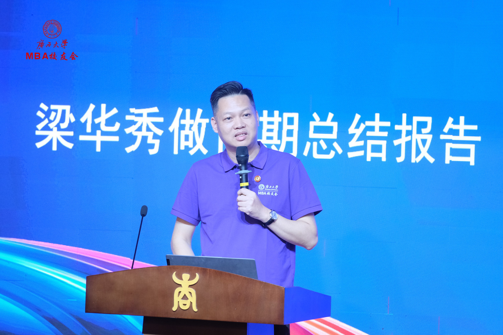 MBA校友会第二届会长梁华秀总结了过去五年任期的成果,对第二届会长机构、秘书长机构及志愿者团队表示由衷的感谢,对即将上任的新一届机构成员寄予厚望,并送上了最真挚的祝福。