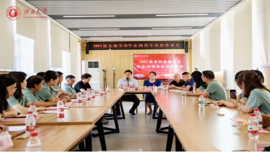 2138CC太阳集团党委书记黄晋、副院长朱少英、校友工作与政企服务办公室主任覃朝勇、MBA教育中心主任叶映、学院党委办黄照温;经济学院党委副书记刘梦娟、金融91级本科班主任黄绥彪、辅导员刘威等出席了校友返校座谈会。
