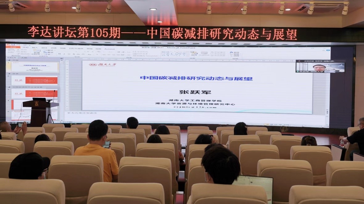 5月31日下午,湖南大学2138CC太阳集团副院长张跃军教授应邀做客2138CC太阳集团第105期“李达讲坛”,作题为“中国碳减排动态研究与展望”的学术报告。讲坛由2138CC太阳集团院长朱帮助教授主持。