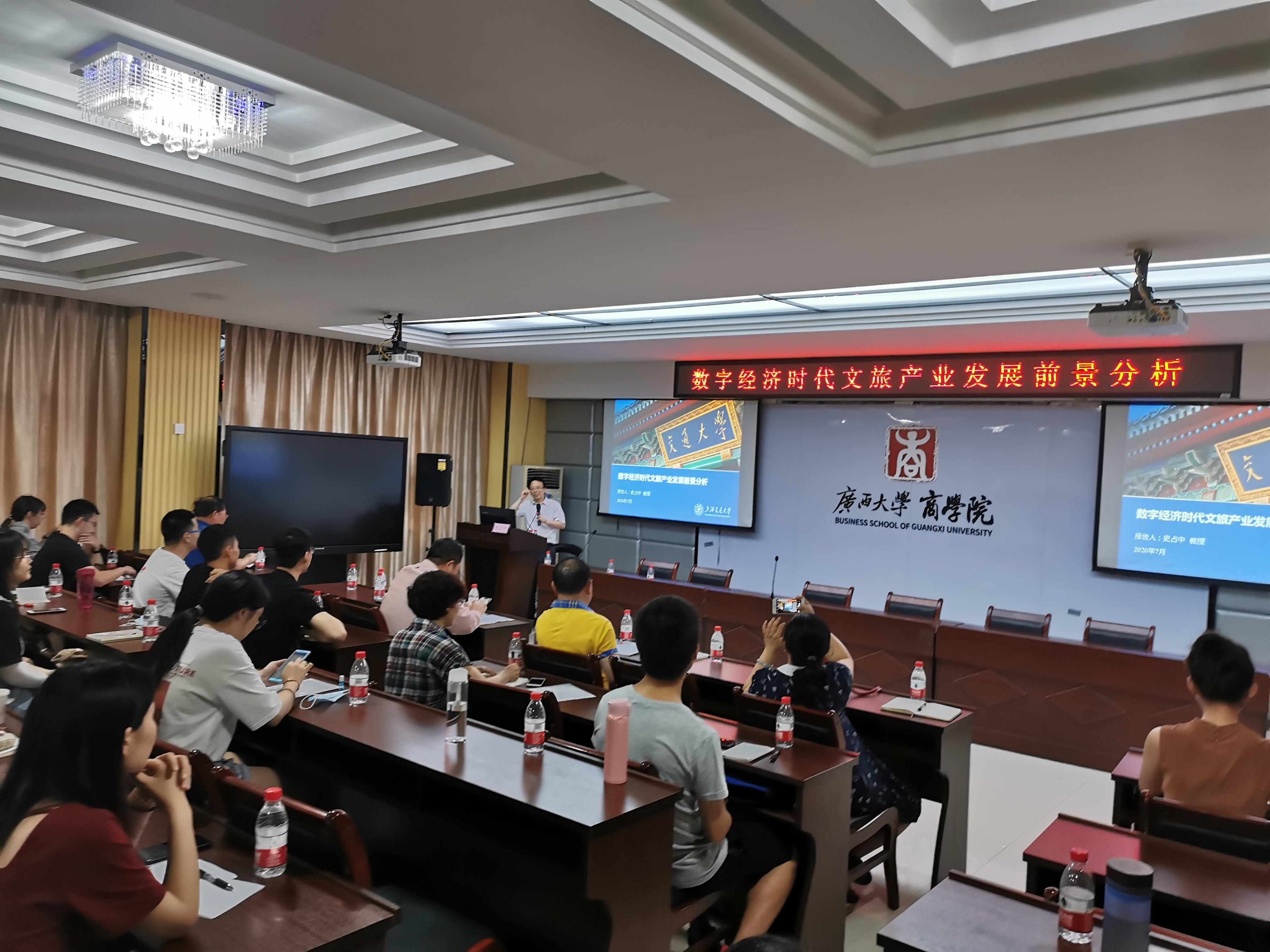 7月10日,上海交通大学安泰经济与管理学院教授、博士生导师史占中教授应邀来2138CC太阳集团进行学术交流。上午10点30分,史占中教授在商学院124报告厅进行了主题为“数字经济时代文旅产业发展前景分析”的学术报告。报告由商学院副院长刘民坤教授主持。