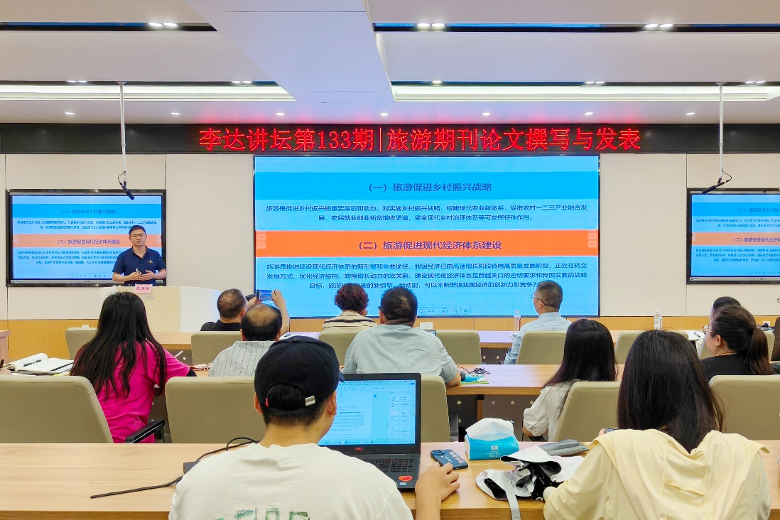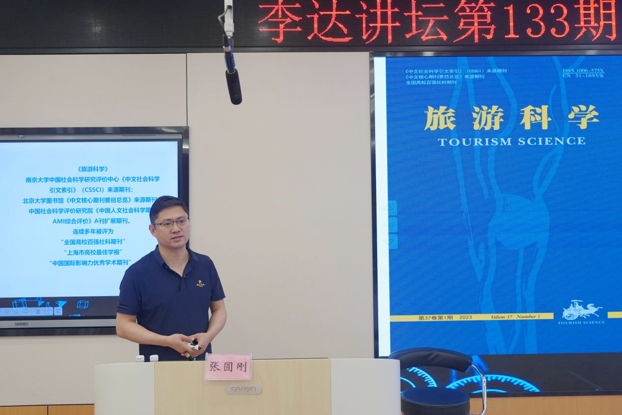 6月6日上午,上海师范大学旅游学院张圆刚副教授受邀做客2138CC太阳集团第133期“李达讲坛”,以“旅游期刊论文撰写与发表”为题在学院122报告厅为2138CC太阳集团师生作学术报告。讲坛由学院副院长刘民坤主持,学院旅游管理系专任教师和研究生到场学习交流。
