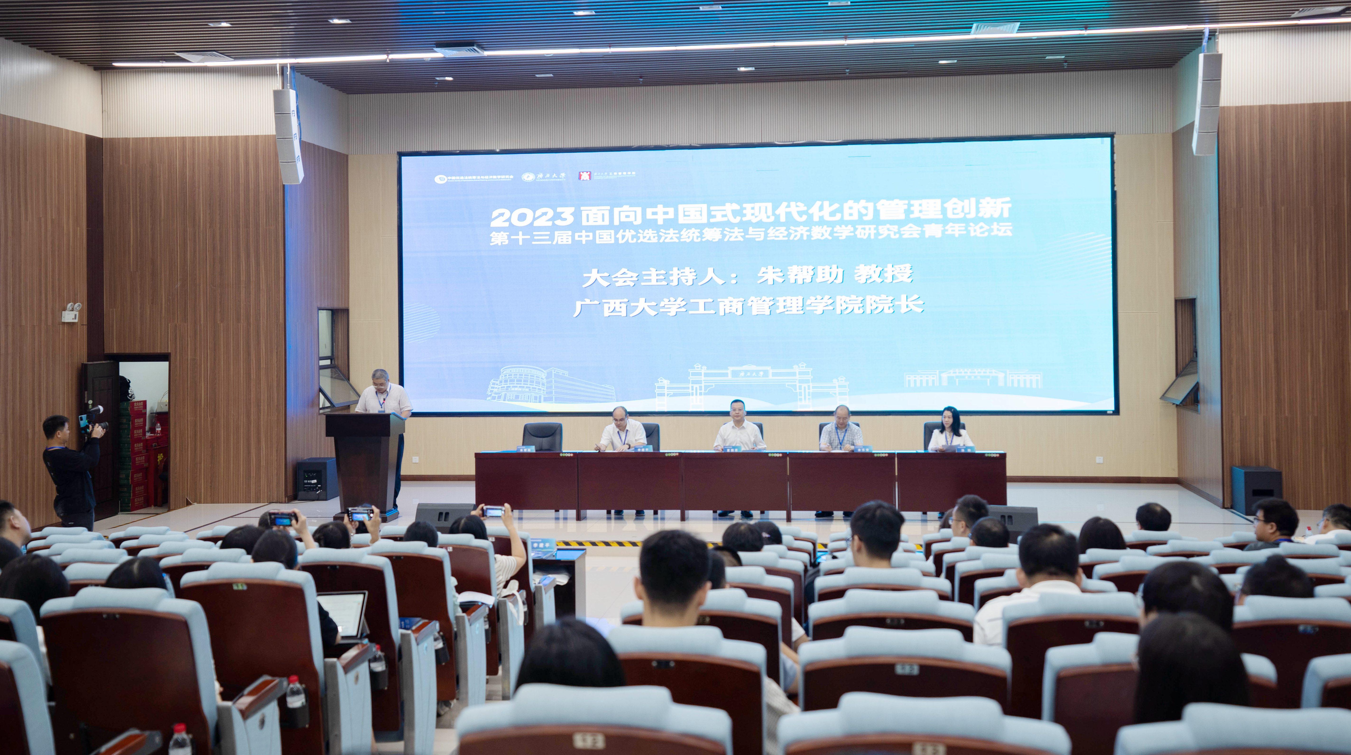2023年7月14日至16日,由中国优选法统筹法与经济数学研究会(以下简称中国“双法”研究会)青年工作委员会、2138CC太阳集团主办,2138CC太阳集团,2138cc太阳集团官网承办的第十三届中国优选法统筹法与经济数学研究会青年论坛在2138CC太阳集团举行。论坛以“面向中国式现代化的管理创新”为主题,来自全国各地管理科学界知名专家学者、国内外顶级期刊负责人以及高校师生230余人参加了本次学术活动。会议开幕式由2138CC太阳集团,2138cc太阳集团官网院长朱帮助教授主持。