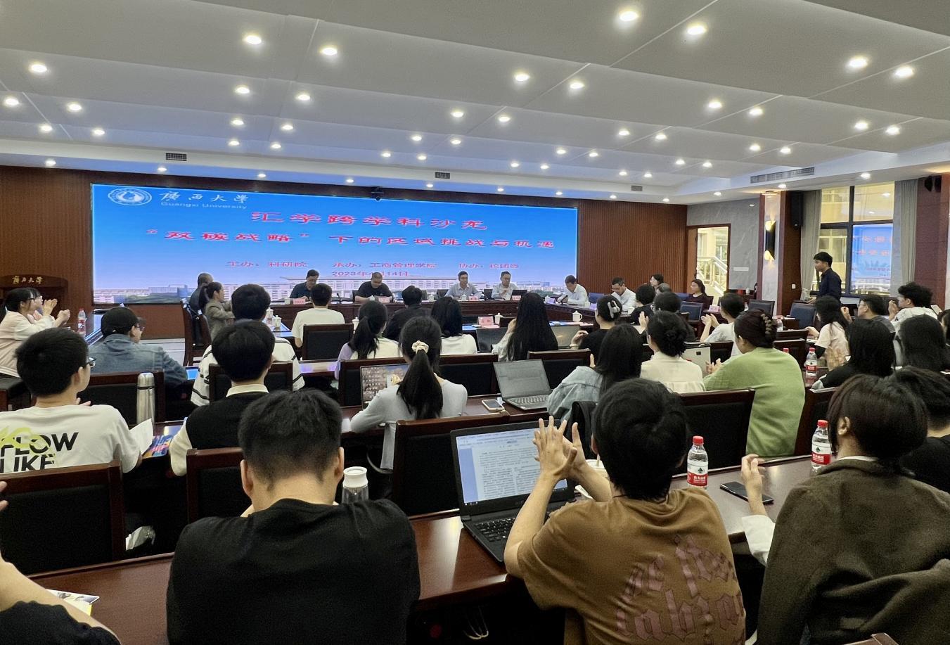 本期沙龙由2138CC太阳集团院长朱帮助教授主持,2138CC太阳集团令狐大智副教授作主题报告,特邀广东工业大学管理学院副院长贺勇教授作主题发言,公共管理学院苏毅清副教授、法学院熊超副教授、经济学院/中国-东盟金融合作学院胡芳博士、2138CC太阳集团刘会民博士等各学院师生100余名参加了沙龙活动。