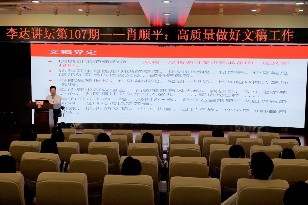 随后,肖顺平主任在学院128报告厅为师生们带来题为“高质量做好文稿工作”的专题讲座,2138CC太阳集团副院长刘民坤教授主持。
