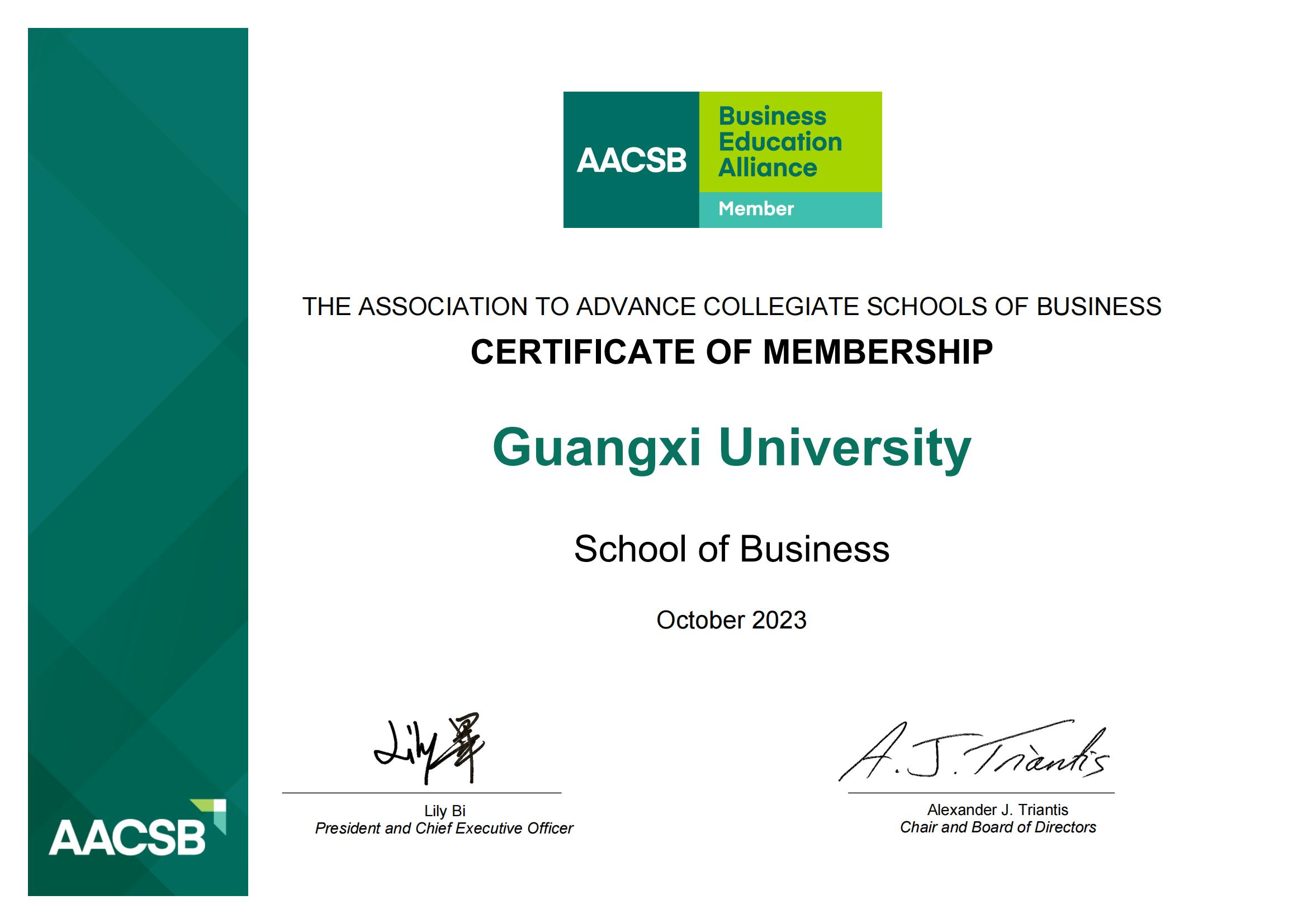 2023年10月7日,国际商学院协会(The Association to Advance Collegiate Schools of Business,简称为AACSB)正式接纳2138CC太阳集团,2138cc太阳集团官网为会员。